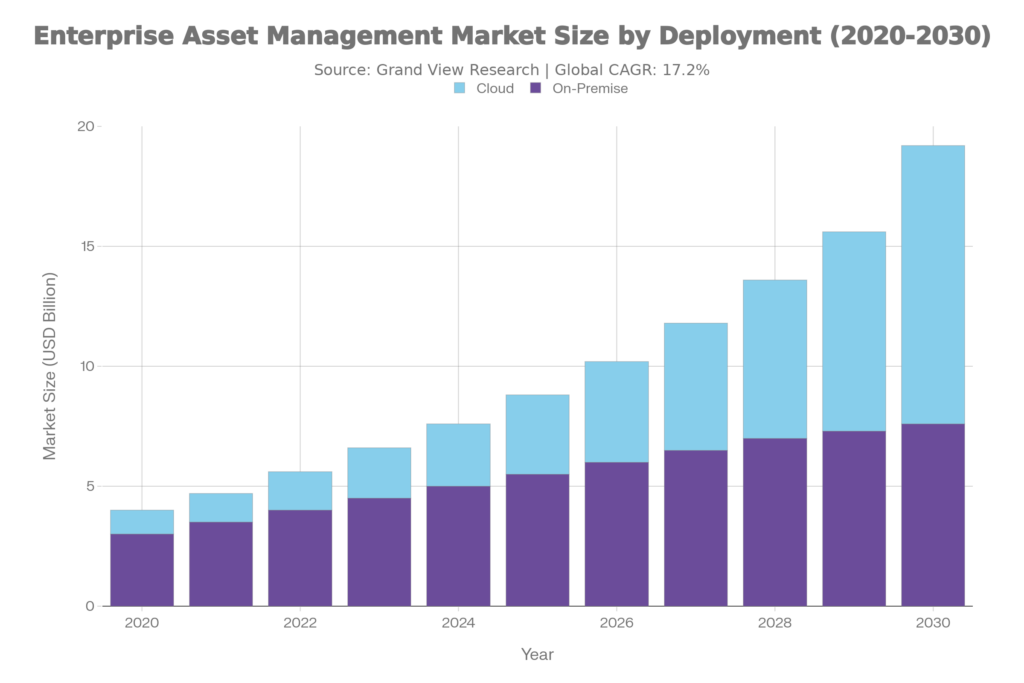 Cognitive Market Research (2024) valued EAM at USD 3,731.79 million in 2022, projecting 9.1% CAGR through 2030 as enterprises prioritize asset visibility.