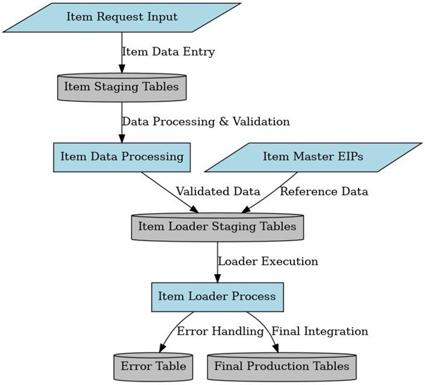 Approval workflows and validations ensure the data is accurate and complete before the item becomes available across Oracle ERP modules.