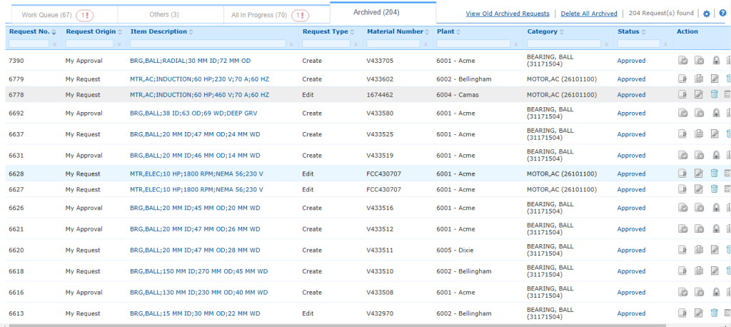 MDG Benefit: With Master Data Governance rules in place for materials and MRO spares, the company can ensure that each part has a single, standardized record with accurate descriptions, part numbers, and supplier information. Data quality rules enforce consistency across all systems, making it easier to track inventory, automate reordering, and prevent the purchasing of redundant parts.