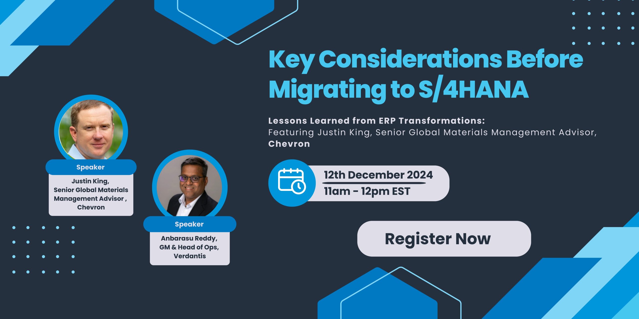 Learn key lessons from Chevron’s SAP S/4HANA migration with Verdantis’s AI-powered solution, and discover strategies for future-proofing your ERP systems